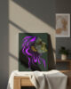 Atmospheric Impact: This painting creates a vibrant, intellectual energy in a room, using its neon linework and deep shadows to spark curiosity and internal reflection.